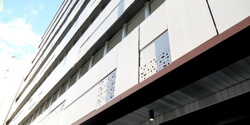 The repairs in this phase of the project were developed with the purpose of modernising the buildings’ external image, using Corian® in Glacier White colour.