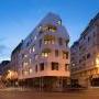 Gli spazi esterni degli appartamenti scavati nella costruzione sono protetti da pannelli divisori traforati in Corian® Exteriors con perforazioni variabili che filtrano la luce del sole, rendendo possibile di stare all’aperto senza essere visti. Servono inoltre a formare uno spazio tampone supplementare sull’incrocio fornendo dell’ombra alle facciate più calde. Il rivestimento di muri e soffitti dei terrazzini in alluminio color mordorè contribuisce a illuminare gli ambienti interni riflettendo la luce del sole. Il volume generale della costruzione è adagiato su una base interamente vetrata affacciata sulla strada e occupata da negozi e spazi comuni.