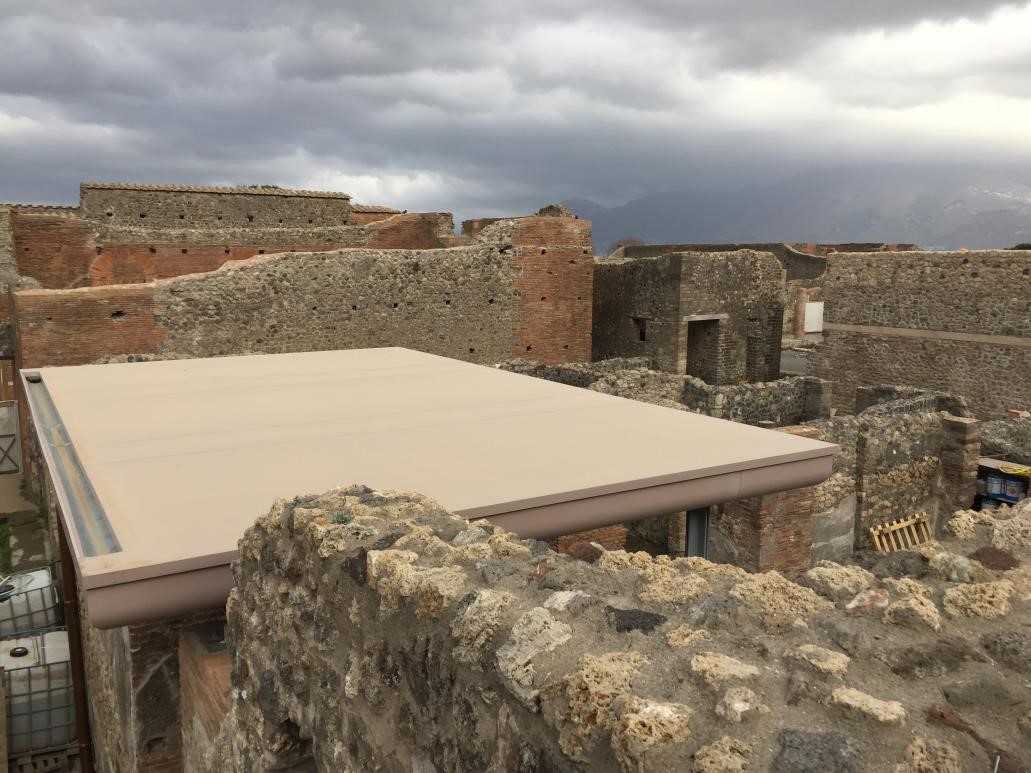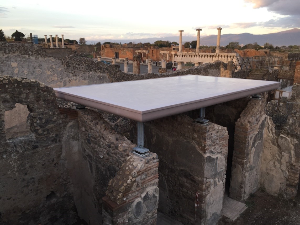 L’azienda Vittorio Pinto Interni di Napoli, specializzata nella lavorazione di Corian® Solid Surface, è stata incaricata dalla società R.W.S. restauri aggiudicataria dell’appalto di realizzare una copertura su misura, sulla base di un progetto concepito dalla Soprintendenza del Parco Archeologico di Pompei.