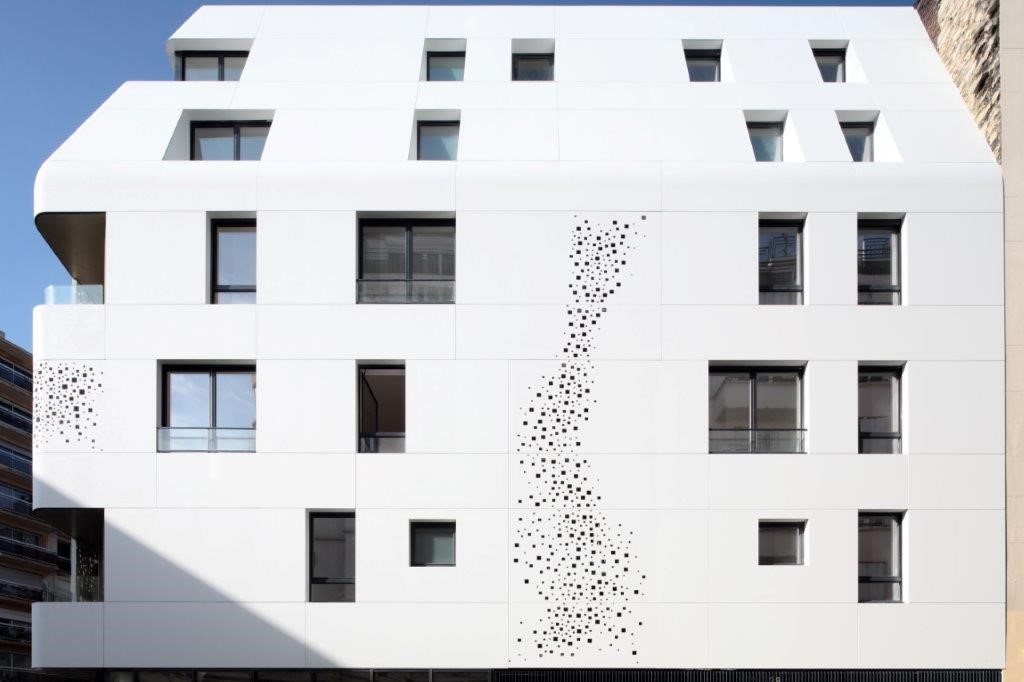 Corian® Solid Surface en fachada y techo: una arquitectura que se integra a la perfección en un contexto urbano y mixto