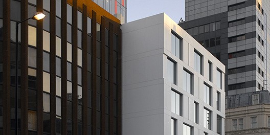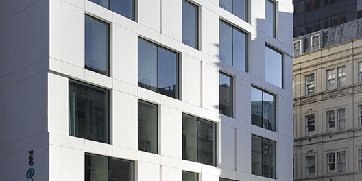 Gwyn Richards of the City of London comments: “The building’s vibrant and playful facades demonstrate that new hotel buildings need not have bland, monotonous and repetitive facades. The ground-breaking use of DuPont™ Corian® as a facing material is innovative and convincing, both during the day and also when illuminated at night. The building demonstrates the importance of an ingenious architectural approach being carried through to implementation, in terms of the integrity of the original architectural concept, but also the highest quality of detailing and materials.