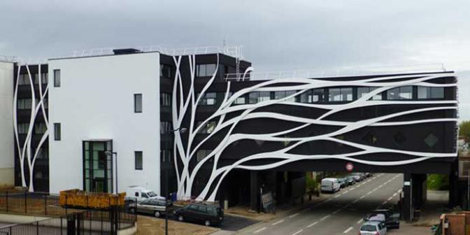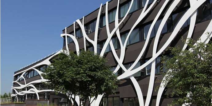 Entirely disused, there was no intention of destroying this building. Fabrice Barbe, Services General Director of the cityhall, precises : « This building is a geographical landmark of the town and in a district which was exclusively constituted of social housing until this day. We wanted a meaningful project both on the form and the substance. We chose to transform the building into a office centre to galvanise the district and the architects Bernard Malecamp and Nicolas Mevel proposed the principle of an arborescence in Corian®, to be in accordance with the town approach on the architectural front : innovative and renewed. »